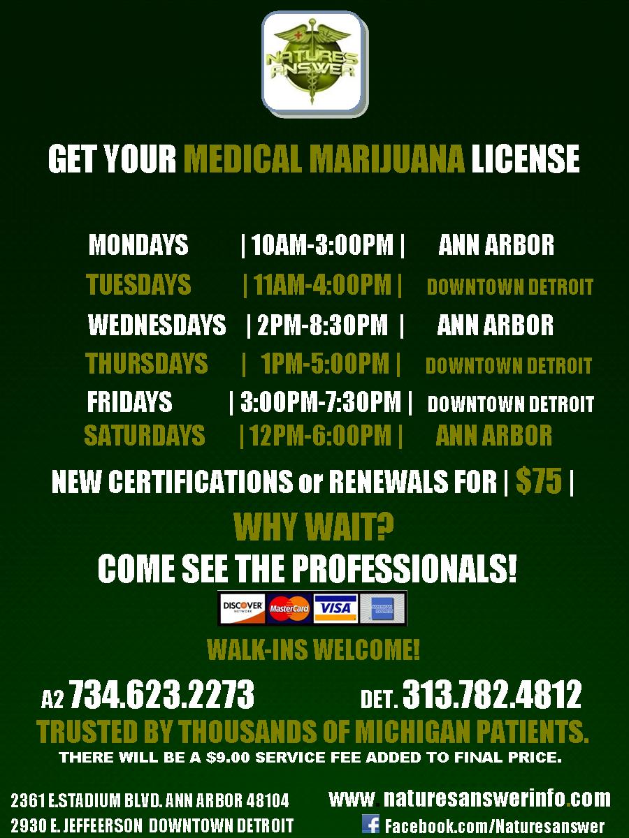 For nearly 4 years, Natures Answer Certification Center has been open to Michigan residents who qualify for a Physician's Certification for a Medical Marihuana License.